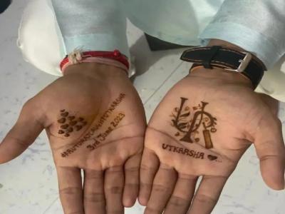 तर ऋतुराजच्या दुसऱ्या हातावर दोघांच्याही नावाचे इंग्रजीतील पहिले अक्षर घेऊन बॅट व बॉलचं शानदार डिझाइन काढण्यात आलं आहे. ऋतुराजची मेहंदी क्रिकेट वर्तुळाचे लक्ष वेधत आहे.