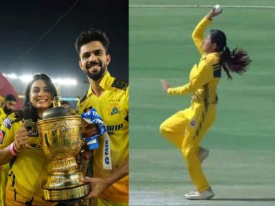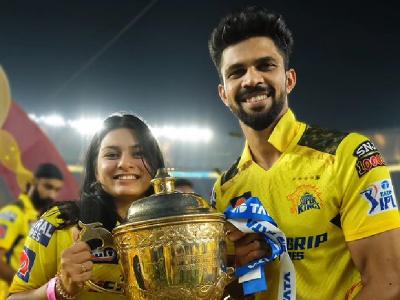 आयपीएल २०२३ च्या फायनलनंतर ऋतुराज आणि उत्कर्षा हे दोघेही चेन्नई सुपर किंग्जचा कर्णधार महेंद्रसिंग धोनीसोबत दिसले होते. ऋतुराजच्या होणाऱ्या बायकोचं नाव उत्कर्षा पवार असून ती देखील क्रिकेटर आहे. त्यामुळे उत्कर्षाच्या प्रेमात ऋतुराज क्लिन बोल्ड झाल्याचे चाहते म्हणत आहेत.