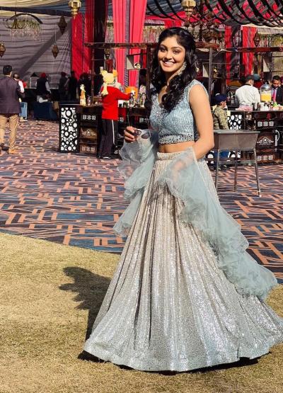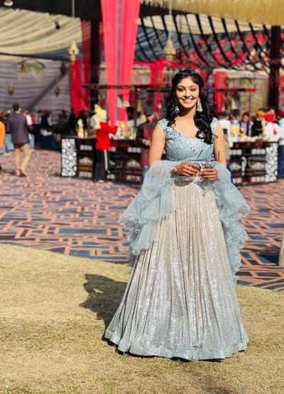 तिनं पोस्ट केलेले फोटो हे कुणाच्या तरी लग्नातील आहेत आणि त्यात ती रुपेरी रंगाच्या ड्रेसमध्ये दिसतेय