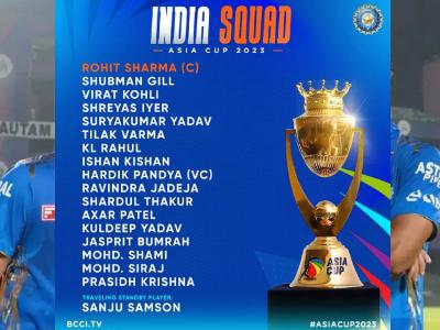 भारतीय संघ - रोहित शर्मा, शुबमन गिल, विराट कोहली, श्रेयस अय्यर, सुर्यकुमार यादव, तिलक वर्मा, लोकेश राहुल, इशान किशन, हार्दिक पांड्या, रवींद्र जडेजा, शार्दूल ठाकूर, अक्षर पटेल, कुलदीप यादव, जसप्रीत बुमराह, मोहम्मद शमी, मोहम्मद सिराज, प्रसिद्ध कृष्णा, राखीव - संजू सॅमसन