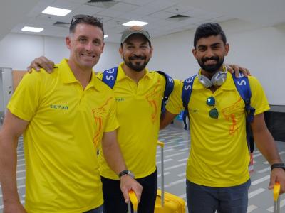 चेन्नई, आयपीएल 2019 : इंडियन प्रीमिअर लीगच्या 12व्या मोसमाची झोकात सुरुवात करणाऱ्या गतविजेत्या चेन्नई सुपर किंग्सला आणखी एका जेतेपदाचे वेध लागले आहेत. सलामीच्या सामन्यार रॉयल्स चॅलेंजर्स बंगळुरूचा 70 धावांत खुर्दा उडवून 7 विकेट्स राखून विजय मिळवणाऱ्या चेन्नईला दुसऱ्या सामन्यात दिल्लीचा सामना करावा लागणार आहे. या सामन्यासाठी चेन्नईचे खेळाडू नवी दिल्लीच्या दिशेने रवाना झाले, परंतु त्यांनी चेन्नईच्या विमानतळावर कल्ला केला. त्यांच्या या मस्तीचे काही छायाचित्र...