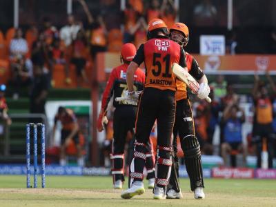वॉर्नर आणि बेअरस्टो या जोडीनं पहिल्या विकेटसाठी 185 धावांची भागीदारी करून आयपीएलमध्ये विक्रम केला. त्यांनी गौतम गंभीर व ख्रिस लीन यांचा 2017सालचा 184* धावांच्या भागीदारीचा विक्रम मोडला.