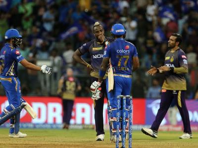सामना संपल्यावर रसेलने मुंबईच्या खेळाडूंचे अभिनंदन केले.