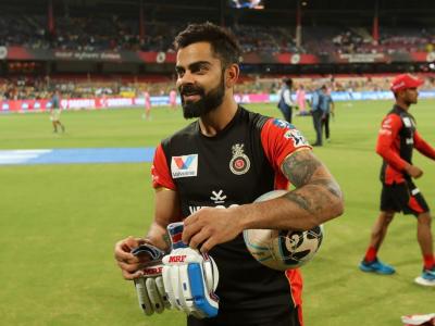 सामन्यापूर्वी आरसीबीचा कर्णधार विराट कोहलीने फुटबॉलचा सराव केला.