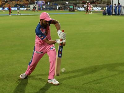 राजस्थानचा फलंदाज अजिंक्य रहाणेने फलंदाजीचा सराव केला.