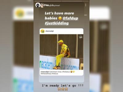 इमारी ड्यू प्लेसिसनं फॅफचा फोटो इस्टा प्रोफाईलवर ठेवला आणि त्यावर लिहिले अजून मुलं जन्माला घालूयात... Let's have more babies; मी मस्करी करतेय...