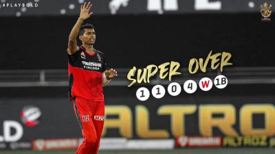 RCBच्या नवदीप सैनीनं ( Navdeep Saini) टिच्चून मारा करताना MIला 7 धावांवर रोखले आणि विराट कोहली व एबी यांनी हे लक्ष्य पार करून RCBला विजय मिळवून दिला.