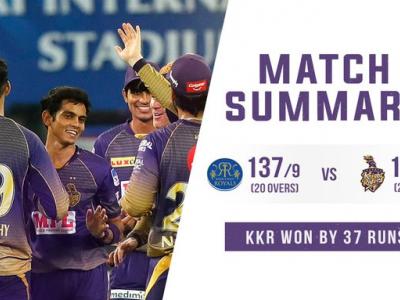 रॉबीन उथप्पाला मोठी खेळी करण्याची संधी होती. पण, तो 2 धावांवर माघारी परतला. RRने 9 बाद 137 धावा केल्या. KKRनं 37 धावांनी विजय मिळवला. टॉम कुरन 36 चेंडूंत 2 चौकार व 3 षटकारांसह नाबाद 54 धावा केल्या.