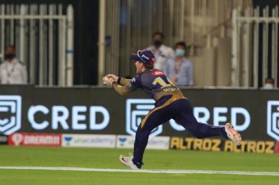 इयॉन मॉर्गन ( Eoin Morgan) आणि राहुल त्रिपाठी ( Rahul Tripathi) यांनी पाच षटकांत 78 धावा चोपून सामन्यातील चुरस कायम राखली. मॉर्गन 18 चेंडूंत 1 चौकार व 5 षटकार खेचून 44 धावांवर बाद झाला.