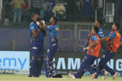 क्विंटन डी कॉक ( 38) व रोहित शर्मा ( 35) यांनी चांगली सुरुवात करून दिल्यानंतरही मुंबई जिंकेल असे वाटत नव्हते. पण, कृणाल पांड्या व पोलार्ड यांनी दमदार भागीदारी केली. कृणाल 32 धावांवर बाद झाला, परंतु पोलार्डची फटकेबाजी सुरूच होती. अखेरच्या चेंडूपर्यंत रंगलेल्या या सामन्यात पोलार्डनं 34 चेंडूंत नाबाद 87 धावा केल्या.