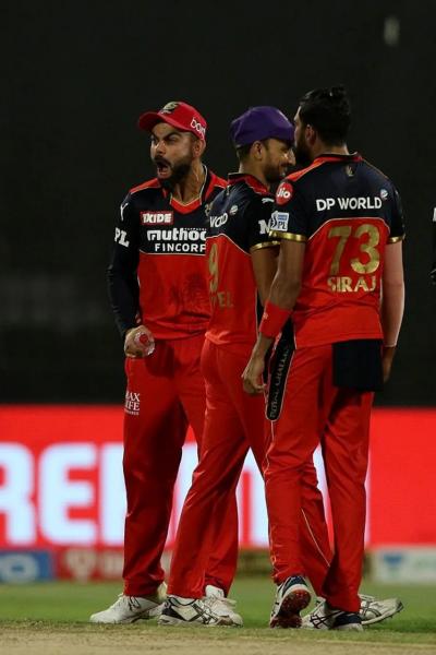 सुनील नरीननं मैदानावर येताच सलग तीन षटकार खेचून KKRवरील दडपण कमी केलं, परंतु मोक्याच्या वेळेला तोही बाद झाला. मोहम्मद सिराजनं १९व्या षटकात दिलेले दोन धक्के RCBला विजय मिळवून देणारे ठरतात, असे वाटू लागले. पण, इयॉन मॉर्गन व शाकिब अल हसन यांनी संयमी खेळ करताना KKRचा विजय पक्का केला. सिराज, हर्षल व युझवेंद्र यांनी प्रत्येकी दोन विकेट्स घेतल्या.