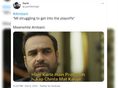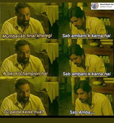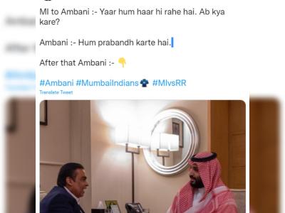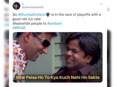 मुंबईनं पहिल्या पॉवर प्लेमध्ये २ बाद ५६ धावा केल्या. पण, इशान किशन आज सुसाट होता, त्यानं चेतन सकारियानं टाकलेल्या ८व्या षटकात २४ धावा कुटल्या. मुंबईनं ८.२ षटकांत २ बाद ९४ धावा करून हा सामना जिंकला. इशान किशननं २५ चेंडूंत ५ चौकार व ३ षटकारासह नाबाद ५० धावा केल्या. मुंबईच्या या विजयानंतर संघ मालक मुकेश अंबानी ( Mukesh Ambani) यांचे भन्नाट मीम्स व्हायरल झाले.