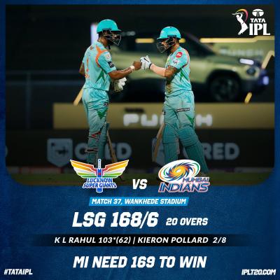 लोकेश ६२ चेंडूंत १२ चौकार व ४ षटकारांसह १०३ धावांवर नाबाद राहिला. लखनौने ६ बाद १६८ धावांचा डोंगर उभा केला. मुंबई इंडियन्सविरुद्ध मागील ९ डावांमध्ये लोकेशने 94 (60), 71* (57), 100* (64), 17 (19), 77 (51), 60* (52), 21 (22), 103* (60) व 103* (62) अशा धावा केल्या.