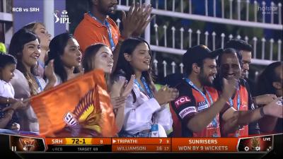 ग्लेन मॅक्सवेल आला आणि फटकेबाजी केली, परंतु टी नटराजनने पाचव्या षटकात त्याची विकेट घेतली. सुयश प्रभुदेसाई ( १५) संघर्ष करताना दिसला, परंतु ९व्या षटकात जगदीशाने त्याला माघारी पाठवले. त्याच षटकात जगदीशाने RCBचा स्टार दिनेश कार्तिकला भोपळ्यावर बाद केले.