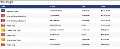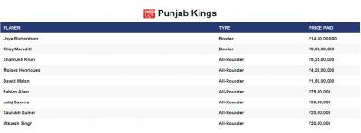 लिलावात खरेदी केलेले खेळाडू ( Players bought at Auction)- झाय रिचर्डसन ( Jhye Richardson) १४ कोटी, शाहरुख खान ( Shahrukh Khan) ५.२५ कोटी, डेवीड मलान (Dawid Malan) १.५ कोटी, रिली मेरेडीथ (Riley Meredith) ८ कोटी, मोईसेस हेन्रीक्स ( Moises Henriques) ४.२० कोटी, जलाज सक्सेना ( Jalaj Saxena) ३० लाख, उत्कर्ष सिंग ( Utkarsh Singh) २० लाख, फॅबीयन अलेन ( Fabian Allen) ७५ लाख, सौरभ कुमार ( Saurabh Kumar) २० लाख.