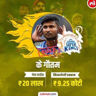 के.गौतम (k gautam) यंदा सर्वात महागडा भारतीय खेळाडू ठरला आहे. अनकॅप्ट भारतीय खेळाडूंमध्ये समावेश असलेल्या के. गौतम याच्यावर चेन्नई सुपरकिंग्ज संघानं तब्बल ९ कोटी २५ लाखांची बोली लावली.