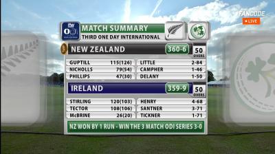 Ireland vs New Zealand 3rd ODI : आयर्लंडने आज क्रिकेट चाहत्यांची मन जिंकली. समोर न्यूझीलंड सारखा तगडा संघ असूनही आयर्लंडने टक्कर देणे काय असते हे पुन्हा एकदा दाखवून दिले. आयर्लंडला पहिल्या वन डे सामन्यात १ विकेटने हार मानावी लागली, आज १ धावेने त्यांचा हातचा सामना हिरावून घेतला. तिसऱ्या वन डेत ३६१ धावांचे लक्ष्य समोर असूनही आयर्लंडचे खेळाडू डगमगले नाही. अखेरच्या चेंडूपर्यंत संघर्ष केला, परंतु त्यांना १ धावेने हार मानावी लागली.