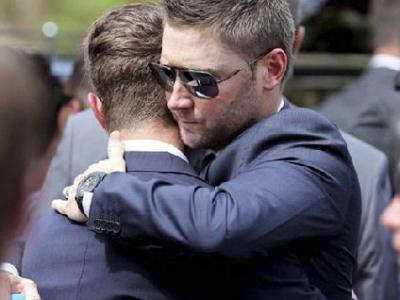 मला तुमच्याबद्दल माहीत नाही पण मी फिलला शोधत असतो. आत्ता त्याचा फोन येईल किंवा एखाद्या कोप-यात त्याचा चेहरा दिसेल मला वाटतं. तो सदैव माझ्यासोबत राहिल अशी मी आशा करतो अशा शब्दांत क्लार्कने त्याला श्रद्धांजली वाहिली.फिलला अखेरचा निरोप देताना मॅक्सव्हिले येथील नागरिक.सहका-याचे सांत्वन करताना ऑस्ट्रेलियन कर्णधार मायकल क्लार्कयावेळी भारतातर्फे विराट कोहली उपस्थित होता.ज्याचा बाऊंसर लागून फिलला दुखापत झाली व त्याचा मृत्यू ओढवला तो सीन अॅबॉटही यावेळी फिलला आदरांजली वाहण्यास उपस्थित होता.आपल्या लाडक्या मित्राला अखेरचा निरोप देताना क्लार्कला अश्रू अनावर झाले होते.ऑस्ट्रेलियाचा कर्णधार मायकेल क्लार्कने त्याचा जीवलग मित्र व लहान भावासारख्या असणा-या फिलच्या कॉफीनला खांदा दिला.फिलच्या अंत्यसंस्कारप्रसंगी शोकाकुल झालेले त्याचे कुटुंबियफिलच्या कॉफीनला खांदा देत त्याच्या वडिलांनी साश्रूनयनांनी आपल्या लाडक्या मुलाला अखेरचा निरोप दिला.एका स्थानिक सामन्यादरम्यान खेळताना बाऊंसर लागून डोक्याला दुखापत झाल्याने मृत्युमुखी पडलेला ऑस्ट्रेलियाचा क्रिकेटपटू फिलीप ह्युजला आज मॅक्सव्हिले या त्याच्या मूळगावी अखेरचा निरोप देण्यात आला. यावेळी त्याचे कुटुंबिय मित्र ऑस्ट्रेलियन क्रिकेट संघातील सहकारी तसेच जगभरातील आजी-माजी दिग्गज खेळाडूंसह अनेक चाहते उपस्थित होते.
