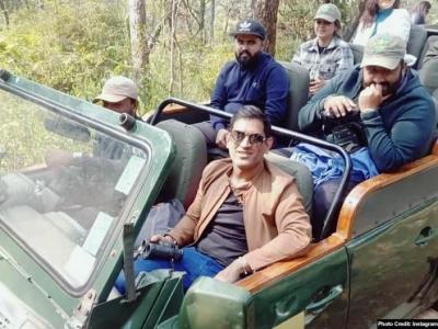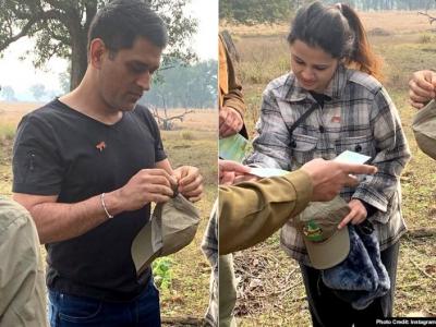 सध्या धोनी विश्रांती घेत असून तो कान्हा अभयारण्यामध्ये फिरायला गेला होता. त्याचे हे फोटो पत्नी साक्षीने सोशल मीडियावर पोस्ट केले असून ते चांगलेच वायरल झाले आहेत.