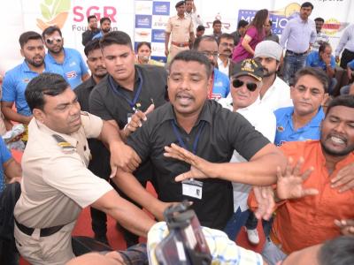 धोनीच्या सुरक्षेसाठी असलेल्या खाजगी सुरक्षा एजन्सीच्या बाऊन्सर्सनी लोकांसोबत धक्काबुक्की केली. त्यामुळे धोनी काहीसा नाराज झाला होता.