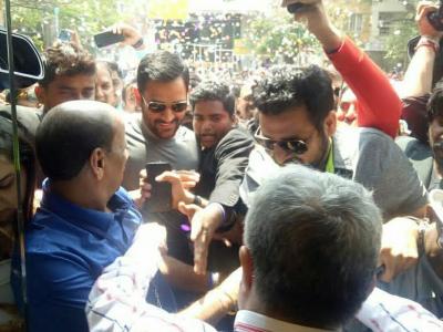 महेंद्रसिंग धोनीला पाहण्यासाठी त्याच्या चाहत्यांनी मोठी गर्दी केली होती.