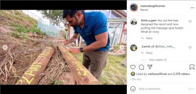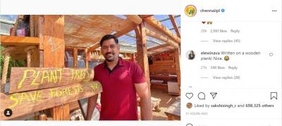 चेन्नई सुपर किंग्सनं सोशल मीडियावर धोनीचा एक फोटो पोस्ट केला. त्यात धोनीनं झाडं लावा, जंगल वाचला असा संदेश दिला आहे. पण, त्यानं हा संदेश एका लागडी फळीवर लिहिला आहे आणि त्यावरून तो ट्रोल होत आहे.