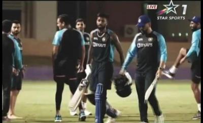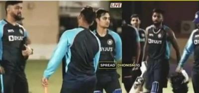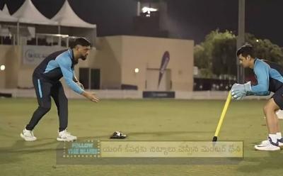 MS Dhoni spend lots of time with Rishabh Pant, Ishan Kishan and Hardik Pandya during the first practice session ahead of the T20 World Cup 2021, Photo