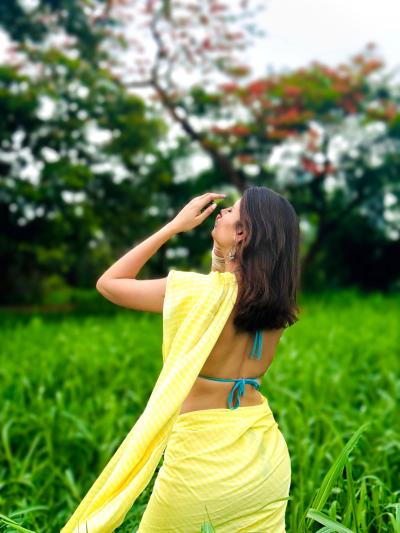 पिवळी साडी... शेत... मादक अदा... पाहा, भारतीय क्रिकेटरच्या बहिणीचे ग्लॅमरस PHOTOS