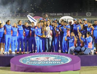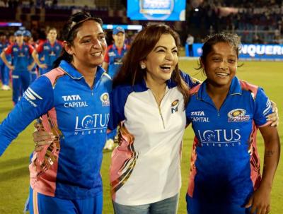 Mumbai Indians WPL 2025 Final Winner Nita Ambani joins celebrations as MI beat DC See Pics Harmanpreet Kaur Nat Sciver Brunt Amelia Kerr Amanjot Kaur