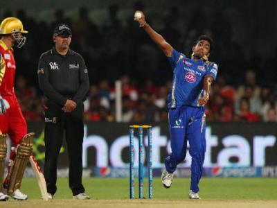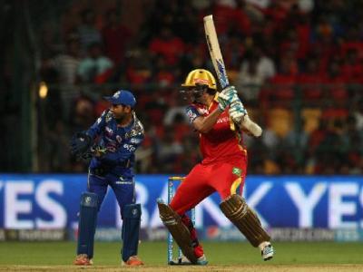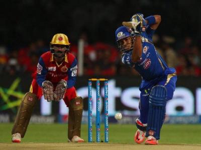 सिमन्सचा झेल पकडताना बंगळुरूचा खेळाडू वरूण अरॉन.मुंबईला दि्वशतकी धावसंख्या गाठून देण्यात महत्त्वाची कामगिरी लेंडल सिमन्सने बजावली. सिमन्सने 59 धावा केल्या.पार्थिव पटेलला बाद केल्यानंतर आनंद व्यक्त करणारा बंगळुरूचा गोलंदाज डेव्हिड विजे. विजेने सर्वाधिक चार गडी टिपले.प्रेक्षकांचं मनोरंजन करणा-या चीअरलीडर्स.कोरी अँडरसनच्या जागी खेळवलेल्या उन्मुक्त चांदने मिळालेल्या संधीचे सोने करताना 37 चेंडूंमध्ये 58 धावांची खेळी केली.मुंबईचा कर्णधार रोहीत शर्मानेही 42 धावांची उपयुक्त खेळी केली.रॉयल चॅलेंजर्स बंगळुरू संघाचे मालक विजय मल्ल्या सामन्याचा मजा लुटताना.क्षेत्ररक्षकाने झेल सोडल्यामुळे निराश झालेला मुंबईचा गोलंदाज मिशेल मॅक्लिहान.ख्रिस गेल व मनविंदर बिस्ला या जोडीला तंबूत धाडत तीन बळी घेणा-या हरभजन सिंगने मुंबईला विजयाची आशा दाखवली.ए. बी. डिव्हिलियर्सची महत्त्वाची विकेट घेणार मुंबईचा गोलंदाज जसप्रित बुमराह.अवघ्या 11 चेंडूंमध्ये 41 धावा ठोकत ए. बी. डिव्हिलियर्सने मुंबईच्या गोटात चिंता निर्माण केली होती.गोलंदाजीत छाप पाडणा-या डेव्हिड विजेने 25 चेंडूंमध्ये 45 धावा ठोकत फलंदाजीही उत्कृष्ट केली.आरंभापासून सलग चार सामने हरणा-या मुंबई इंडियन्सच्या संघाने अखेर रविवारी बंगळुरूला हरवत विजयाचे खाते उघडले. मुंबईने 209 धावा केल्यानंतर बंगळुरूला 191 धावांवर रोखले आणि 18 धावांनी हा सामना जिंकला.