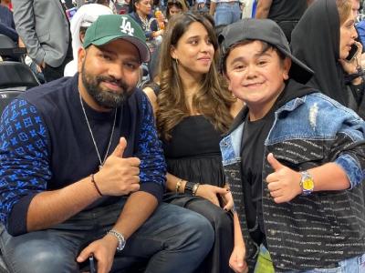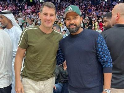 चार तारखेला अबू धाबी येथील एतिहाद एरिना येथे डेन्व्हर नगेट्स आणि बोस्टन सेल्टिक्स यांच्यात सामना झाला. यावेळी रोहित पत्नीसह उपस्थित होता. NBA ने आपल्या सोशल मीडिया प्लॅटफॉर्मवर रोहित शर्माचा फोटो शेअर केला आहे.