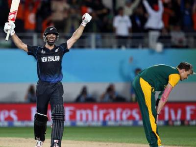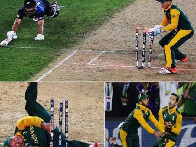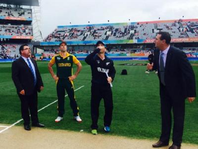 न्यूझीलंडकडून पराभव स्वीकारल्यावर दक्षिण आफ्रिकन खेळाडूंना मैदानावरच रडू कोसळले.चोकर्स म्हणून ओळखल्या जाणारा दक्षिण आफ्रिकेचा संघ दबावाखाली खेळण्यात अपयशी ठरला. कोरी अँडरसन व इलियटला बाद करण्याच्या तीन सुवर्ण संधी या संघाने क्षुल्लक चुका करत गमावल्या. या तीन चुका आफ्रिकेला चांगल्याच महागात पडल्या.७३ चेंडूत ८४ धावांची खेळी करणा-या ग्रँट इलियटने ४२ व्या षटकाच्या पाचव्या चेंडूवर षटकार ठोकून संघाला दिमाखदार विजय मिळवून दिला.न्यूझीलंडचा सलामीवीर व कर्णधार ब्रँडन मॅक्यूलमने २६ चेंडूत ५९ धावांची धडाकेबाज खेळी करत न्यूझीलंडच्या विजयाचा पाया रचला. मॅक्यूलमनंतर गप्टिल केन विल्यिम्सन व रॉस टेलरही स्वस्तात बाद झाले. यानंतर कोरी अँडरसनने ग्रँट इलियटला मोलाची साथ देत न्यूझीलंडला विजयाच्या दिशेने नेले. कोरी अँडरसनने ५८ धावांची खेळी केली.सामन्यातील सात षटकं ऐन वेळी कमी झाल्यावर फलंदाजीसाठी आलेल्या डेव्हिड मिलरने तुफानी खेळी केली. मिलरने १८ चेंडूत ४९ धावा केल्या. तर डिव्हिलियर्स ६५ धावांवर नाबाद राहिला. दक्षिण आफ्रिकेने ४३ षटकांत २८१ धावा केल्या.३८ व्या षटकानंतर पावसाच्या व्यत्ययामुळे सामना काही वेळेसाठी थांबवण्यात आला. शेवटी हा सामना ४३ षटकांचा खेळवण्यात आला. खेळ पुन्हा सुरु होताच प्लेसिस ८२ धावांवर बाद झालाप्रथम फलंदाजी करणा-या दक्षिण आफ्रिकेची सलामीची जोडी अपयशी ठरली. मात्र फाफ डू प्लेसिस व कर्णधार एबी डिव्हिलियर्स या जोडीने शतकी भागीदारी करत दक्षिण आफ्रिकेला मजबूत स्थितीत आणले. या दोघांनी ७३ चेंडूत १०३ धावांची भागीदारी केली.दक्षिण आफ्रिकेने नाणेफेक जिंकून प्रथम फलंदाजी करण्याचा निर्णय घेतला.वर्ल्डकपमध्ये मंगळवारी दक्षिण आफ्रिका विरुद्ध न्यूझीलंड यांच्यात झालेल्या सेमी फायनलमध्ये न्यूझीलंडने बाजी मारत फायनलचे तिकीट मिळवले. या रोमहर्षक सामन्याची ही क्षणचित्रे