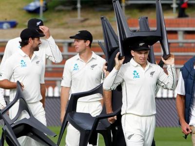न्यूझीलंडच्या खेळाडूंनी तर चक्क मैदानात खुर्च्या उचलून आणल्या, पण का...