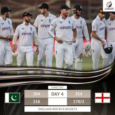 PAK vs ENG, 3rd Test : इंग्लंडने तिसऱ्या कसोटीतही पाकिस्तानला घरच्या प्रेक्षकांसमोर नाक घासायला लावले. पहिल्या दोन कसोटींत सपाटून मार खाल्यानंतर पाकिस्तान कराचीत संघर्ष करेल असे वाटले होते. पण, इंग्लंडच्या १८ वर्षाच्या रेहान अहमदने त्यांची कोंडी केली. पाकिस्तानी वंशाच्या रेहानने बाबर आजम अँड टीमला इंगा दाखवला. त्यानंतर इंग्लंडच्या फलंदाजांनी मोहीम फत्ते केली आणि तिसरी कसोटी ८ विकेट्स राखून जिंकली.