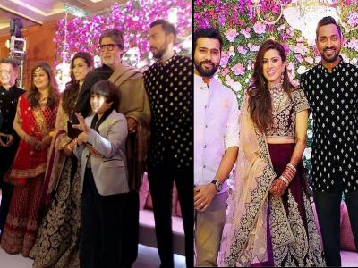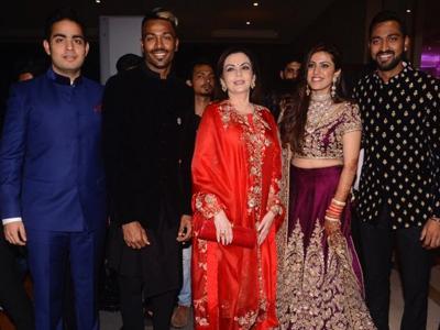 मुंबई इंडीयन्सचे मालक अंबांनी कुटूंबीयसुध्दा या सोहळ्यात पोहोचले होते. नवविवाहीत जोडपं आणि हार्दिक पांड्याने या कुंटूबासोबत फोटोसाठी पोज दिली.