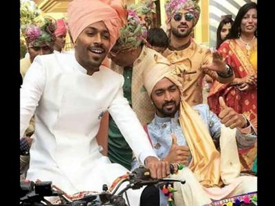 भाऊ कृणाल पांड्याच्या लग्नात हार्दिक पांड्या एकदम उत्साहात दिसत होता. मुळ खट्याळ आणि मस्तीखोर स्वभावात त्याचा लग्नमंडपातला दंगा चालुच होता. लग्नवरात आणताना हार्दिकने कृणालला बुलेटवरुन आणले.