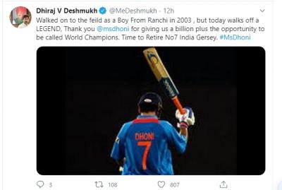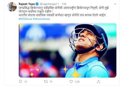 धोनी केवळ सर्वसामान्यांसाठी हिरो नव्हता, तर राजकारणातील दिग्गजांसाठीही तो आवडता खेळाडू होता. म्हणूनच धोनीच्या निवृत्तीनंतर अनेक दिग्गजांनी आपल्या भावना व्यक्त केल्या आहेत.