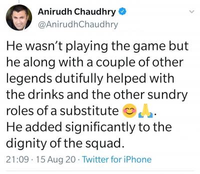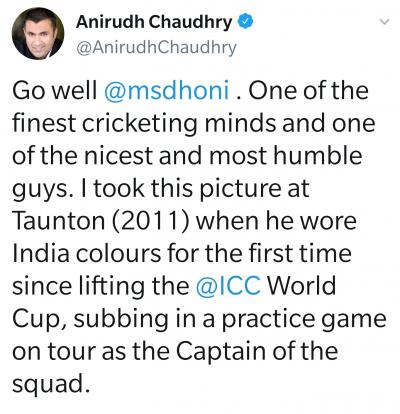 अनिरुद्ध चौधरी यांनी आपल्या ट्विटर अकाऊंटवरुन एक आठवण शेअर केली होती. धोनीने हेलिकॉप्टरच्या उड्डाणाप्रमाणं उंची गाठलीय, पण आजही त्याचे पाय जमिनीवरच आहेत.