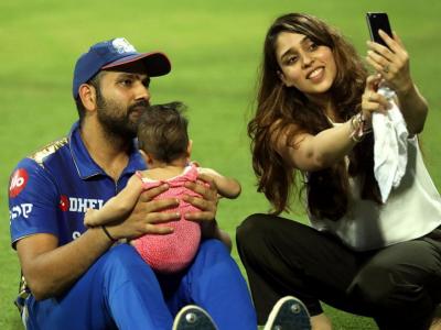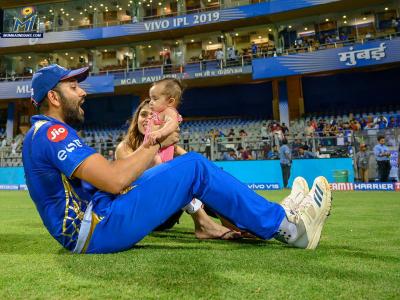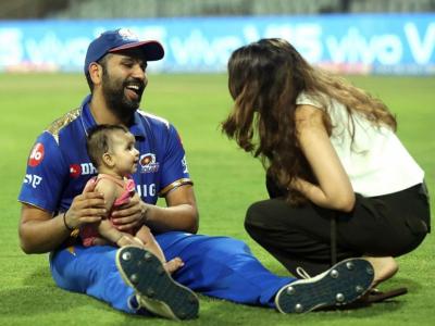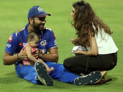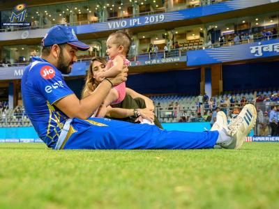 Rohit Sharma captain of Mumbai Indians with wife Ritika and daughter Samaira after the match against KKR