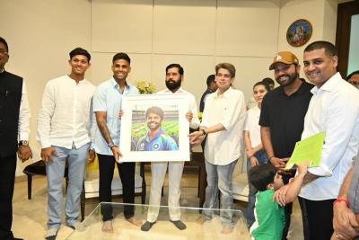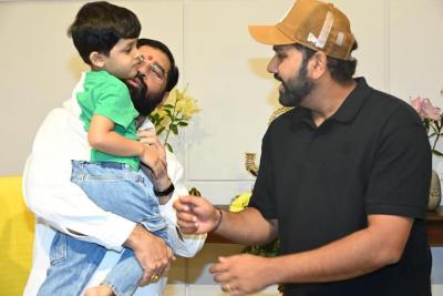 Rohit Sharma CM Eknath Shinde grandson: मुंबईकर जगज्जेत्या खेळाडूंनी आज मुख्यमंत्र्यांच्या निवासस्थानी हजेरी लावली. त्यावेळी छोट्या समायराचा बाबा असलेल्या रोहित शर्मा एकनाथ शिंदे यांच्या नातवाशी याच्याशी गोड संवाद साधला.