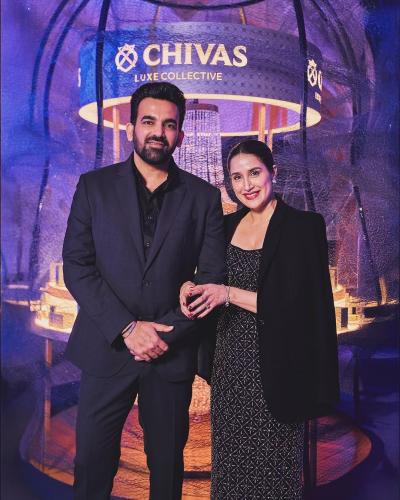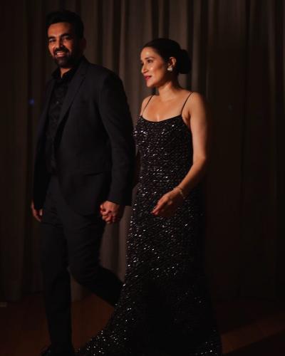 Romantic couple photos of indian cricketer Zaheer Khan bollywood hot actress Sagarika Ghatge Classy Black Look see pics