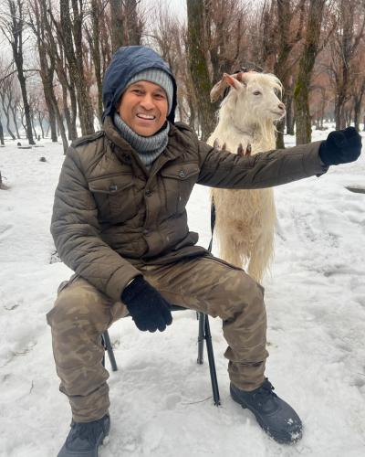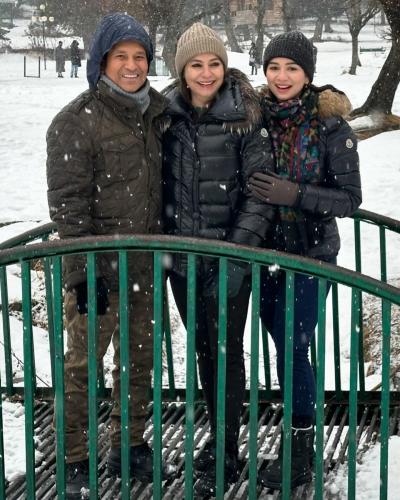 Sachin Tendulkar enjoying snowfall fun in the Kashmir Pahalgam Along with daughter Sara Tendulkar and wife Anjali