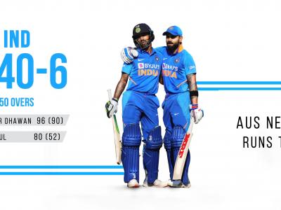 धवन, कोहली आणि राहुल यांच्या खेळींच्या जोरावर भारताला ३४० धावा उभारता आल्या.