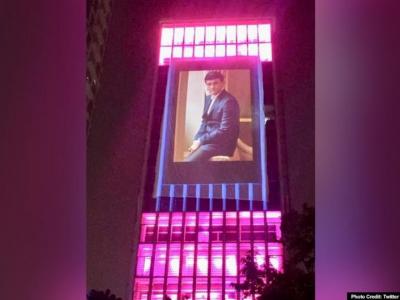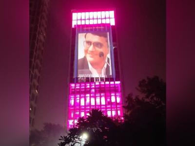 गुलाबी रोषणाईबरोबर लाडक्या सौरव गांगुलीचे फोटो बऱ्याच ठिकाणी झळकत आहेत.