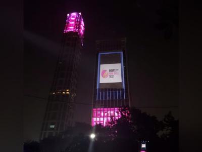 कोलकात्यातील महत्वाच्या इमारतींवर गुलाबी रंगाची रोषणाई आणि बीसीसीआयचा लोगो दिसत आहे.