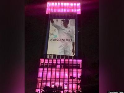 कोलकात्यातील महत्वाच्या इमारतींवर गुलाबी रंगाची रोषणाई आणि बीसीसीआयचे अध्यक्ष सौरव गांगुली यांचे छायाचित्रही दिसत आहे.