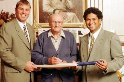 इंडियन हिस्ट्री पिक नावाच्या ट्विटर हँडलवरुन सचिन तेंडुलकर, सर डॉन ब्रॅडमन आणि शेन वॉर्नचा 1998 सालच्या भेटीचा फोटो शेअर करण्यात आला आहे.