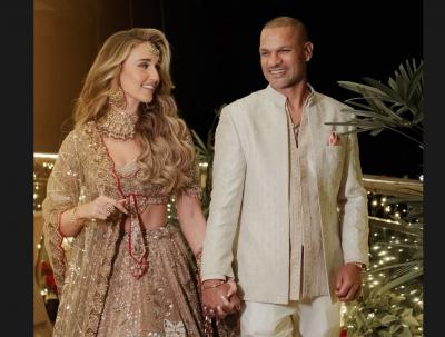 Shikhar Dhawan And Sophie Shine Share Pics Of Reception Look Newlyweds Chose Classic Black Suit And Pale Pink Lehenga