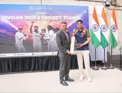 भारतीय क्रिकेट संघाचा कर्णधार शुबमन गिल याने उच्चायुक्त विक्रम दोराईस्वामी यांना स्वाक्षरी केलेली खास बॅट गिफ्ट केल्याचे पाहायला मिळाले.
