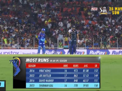 शुबमन गिलने आज प्ले ऑफमध्ये सर्वोत्तम धावसंख्येचा विक्रम मोडला. त्याने १२३ धावा ओलांडताच वीरेंद्र सेहवागच्या नावावर असलेल्या १२२ ( PBKS vs CSK, 2014) धावांचा विक्रम मोडला. शेन वॉटसनने २०१८मध्ये हैदराबादविरुद्ध ११७*, वृद्धीमान साहाने २०१४ मध्ये KKR विरुद्ध ११५* धावा केल्या.